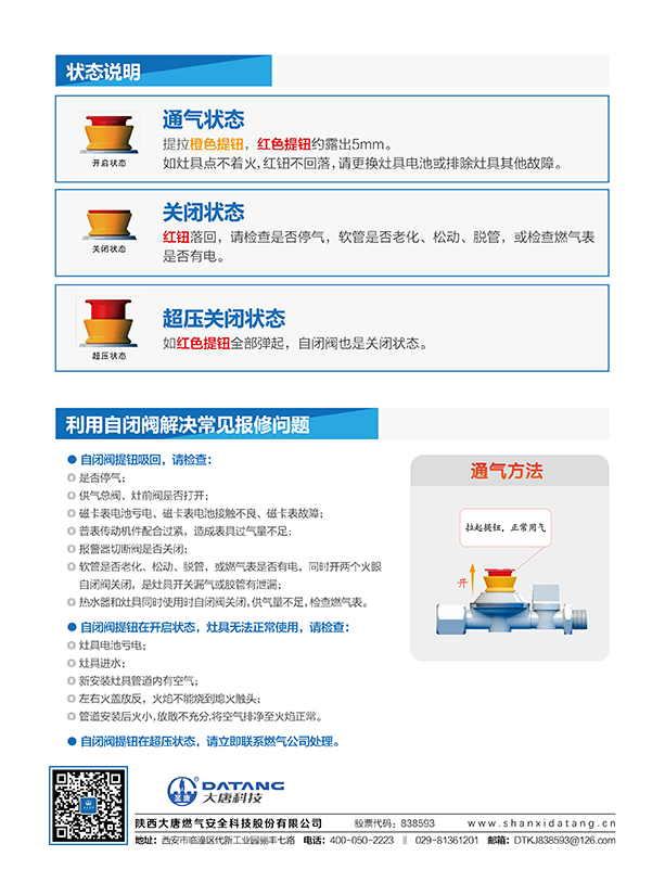 可以用自閉(bì)閥對戶内管(guan)路系統進行(hang)氣密性檢測(ce),及時發現洩(xiè)漏隐患。