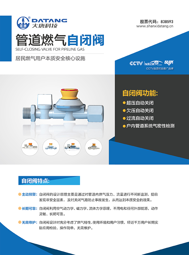 管道燃氣自(zì)閉閥,适用于(yu)管道天然氣(qi)使用。