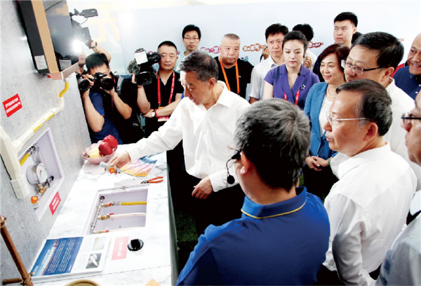 國務委員王勇聽取北京燃氣集團領導介紹自閉㊙️閥使用情況;作為北京市政府的惠民工程,大唐自閉閥已經在全市迅速普及,北京市長陳吉甯體驗自閉閥。
