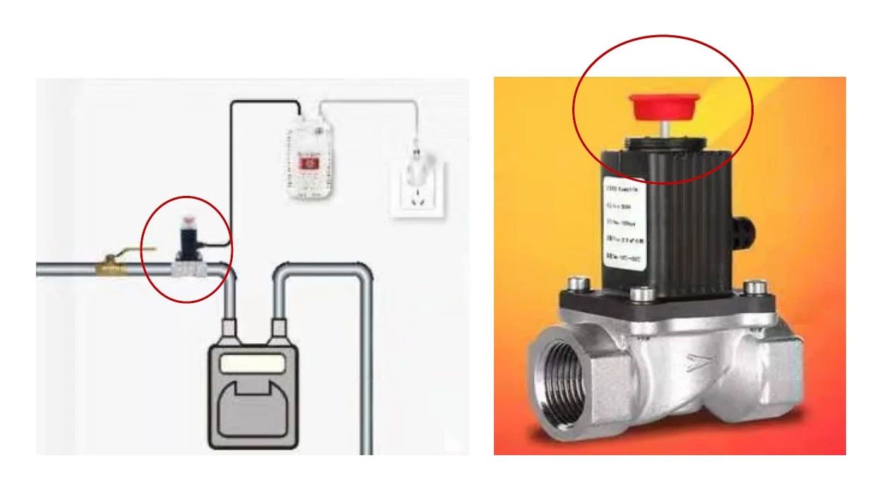 4、如果用戶家裡裝了報警器和聯動的電磁閥(又叫緊💛急🐪切斷閥),請您檢查電磁閥的紅鈕是否關閉,如關閉,請提📱起(見下圖);