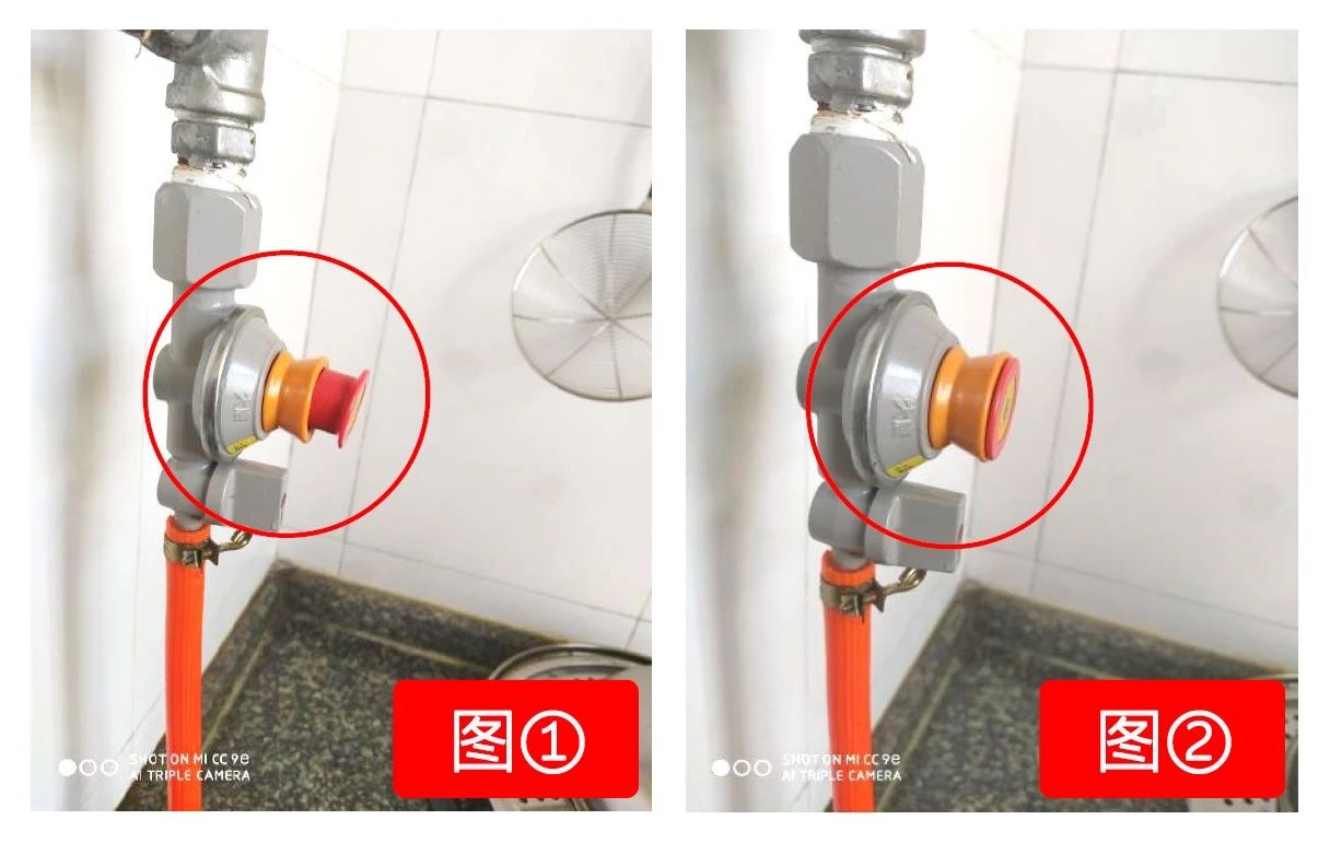 a、如紅色提鈕吸回(見圖②),說明竈具、軟管或接頭有洩漏、鼠咬📞、破損、連接松動等安全隐患,提醒用戶重點檢查或更換軟管,更💔換後🚶♀️須按上述步驟自檢。法律規定更換軟管是用戶自己的責任,同時規定燃氣公司應指🔞導用戶安全用氣。